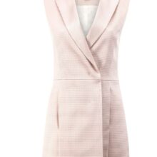 TEXTURED METALLIC SLEEVELESS BLAZER DRESS (CHAMPAGNE)