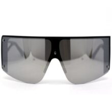 OVERSIZE SHIELD FLAT TOP HALF RIM SUNGLASSES BLACK SILVER MIRROR